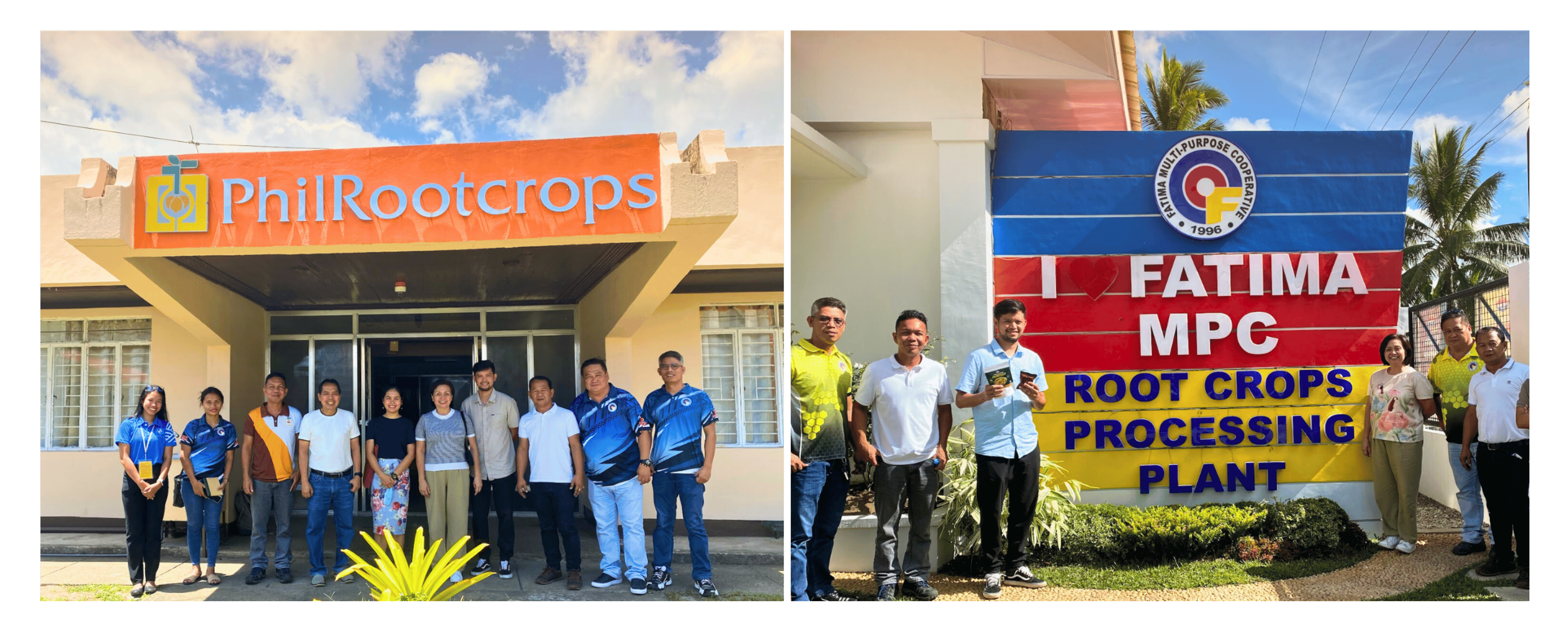 Left to Right: Group photos taken with PhilRootcrops, FUH, and FMPC at the Philippine Root Crop Research and Training Center, VSU, and FMPC Root Crops Processing Plant in Tunga, Leyte.